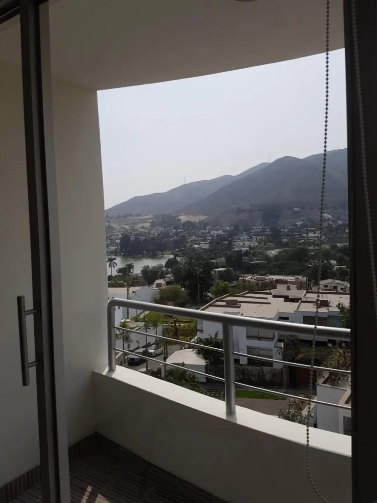 ALQUILO Departamento Amoblado. Linda vista a La Laguna , totalmente amoblado y equipado . Se puede alquilar en contrato anual y/o contrato por mes completo. Ubicado en 3er piso con ascensor . Son 93m2 de 2 dormitorios , walking closet, 2 baños ( con facilidades para adultos mayores) . Cocina con horno, cocina de vitrocerámica, campana , refrigeradora, horno microonda. Lavandería con Lavaseca. Sala comedor . TV 40″ . Dormitorio principal cama Queen TV 32» . Segundo cama de 2 plazas . Tienentambién cuarto y baño para auxiliar. Se alquila con 2 estacionamientos en paralelo. Cuenta con terraza de uso común y zona de BBQ ( Uso coordinado con administración del edificio)