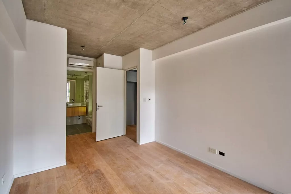 Dormitorio en suite muy luminoso con placard doble hoja de piso a techo, baño completo y salida a balcón.